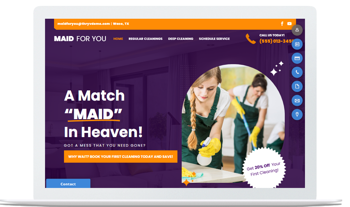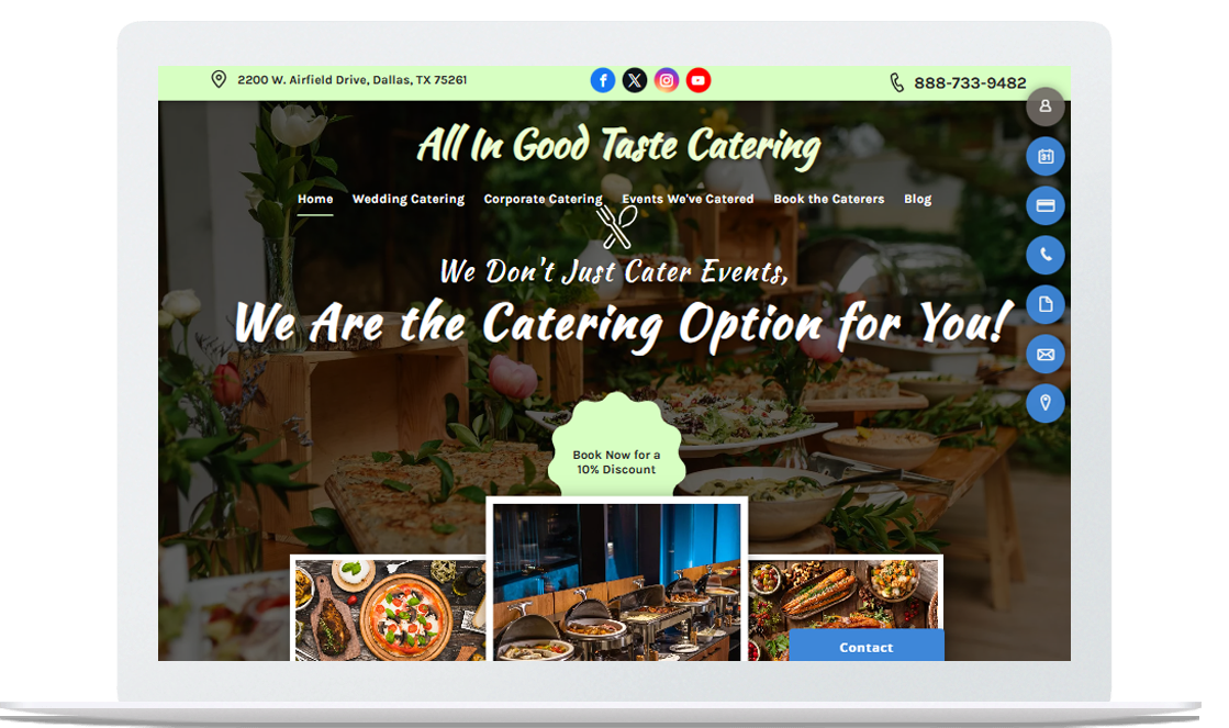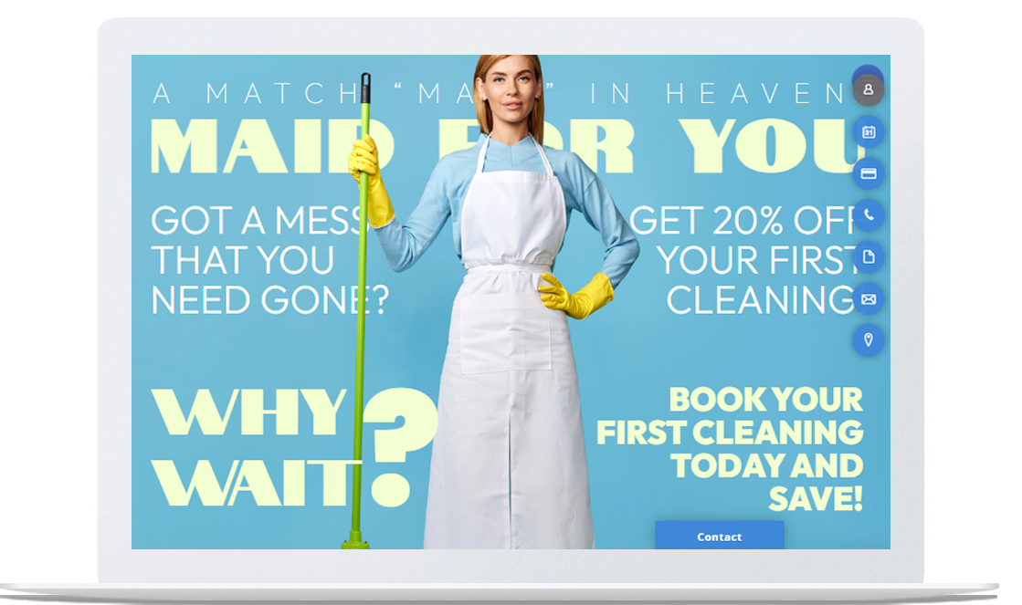 Contact Form, Follow Us on Social, Submit Deposit, Leave a Review.