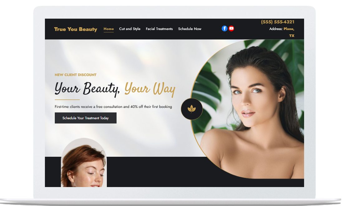 Welcome Back message appears for 2nd time site visitors prompting to schedule appointment..